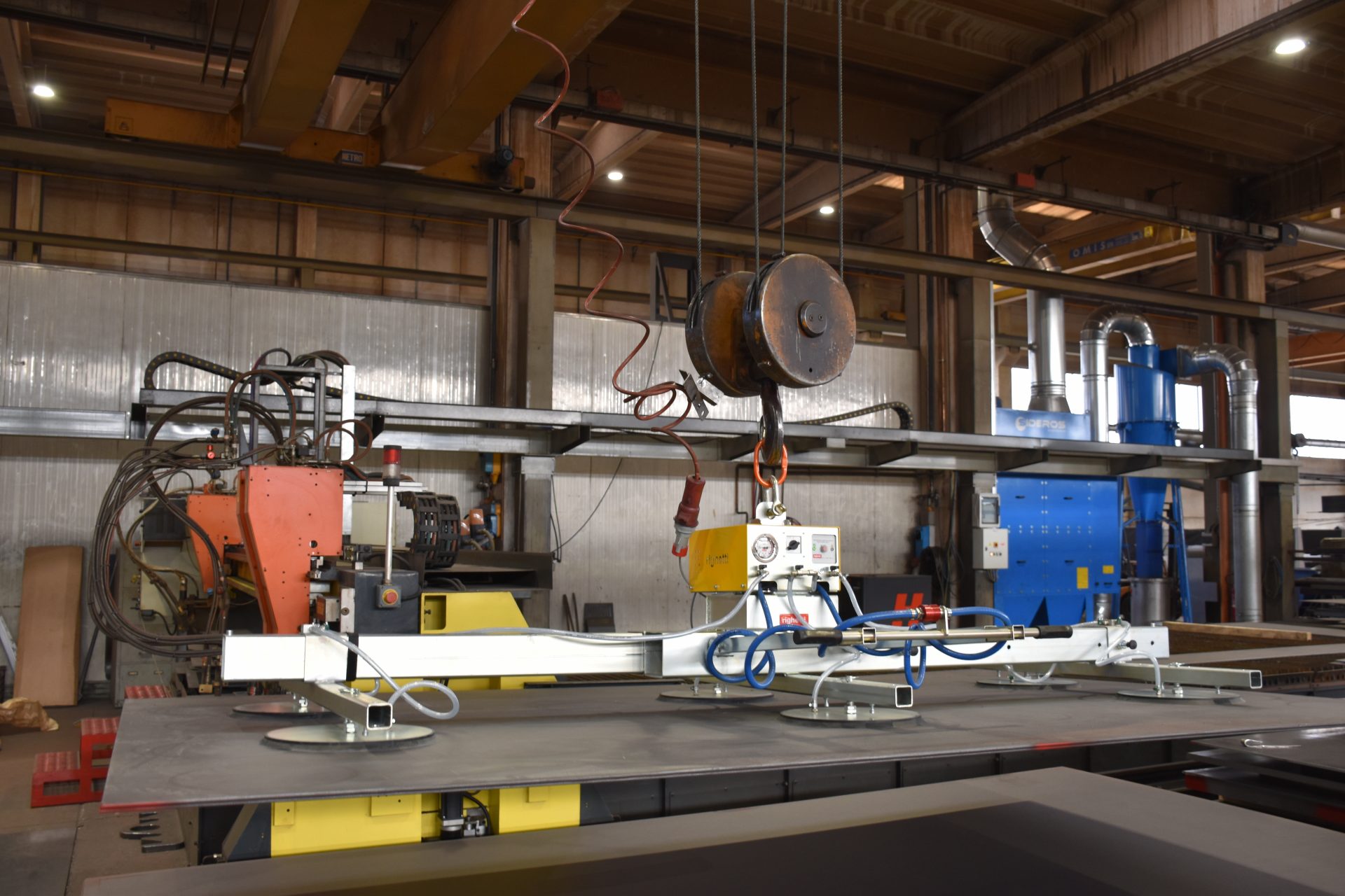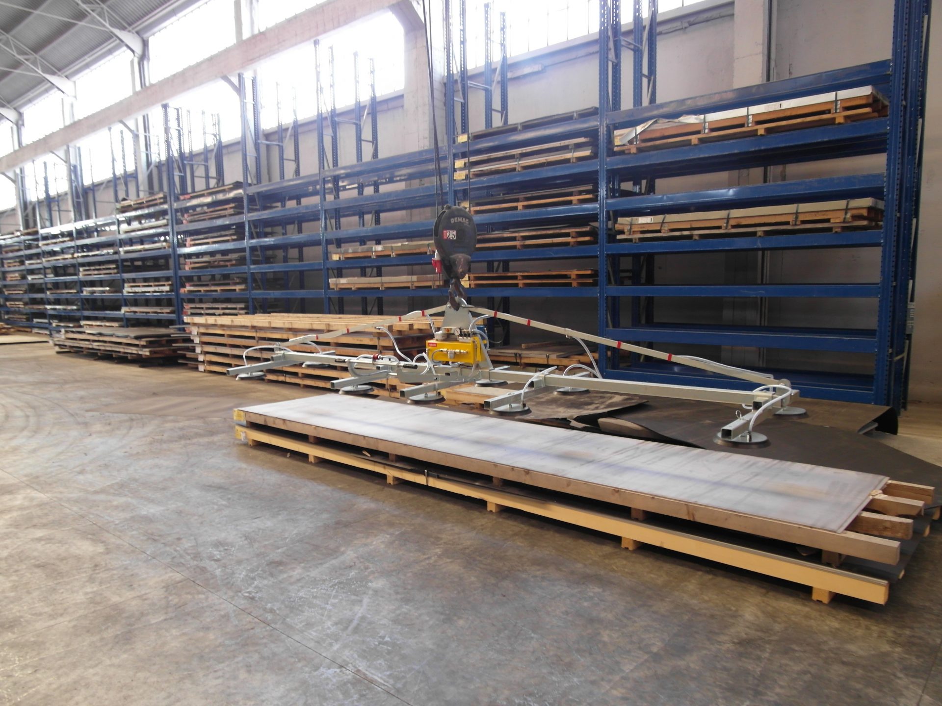Para compensar la flexión natural de las chapas, las placas de succión están equipadas con un sistema de muelles que garantiza el correcto equilibrio de la carga durante toda la operación de manipulación.