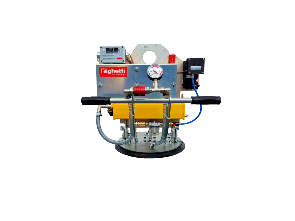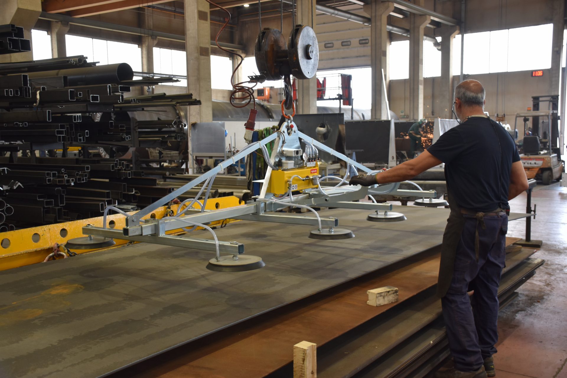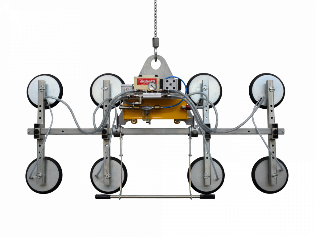 En el proceso de producción, las ventosas de elevación son herramientas ideales para mover chapas de un lugar a otro. En este ámbito, los equipos suelen contar con una estructura horizontal fija, aunque también existen modelos inclinables. Righetti proporciona ventosas en una variedad de tamaños y capacidades, adaptándose a los distintos formatos que se deben manejar. Por ejemplo, para chapas de formatos variados, se ofrecen soluciones con estructuras telescópicas.
