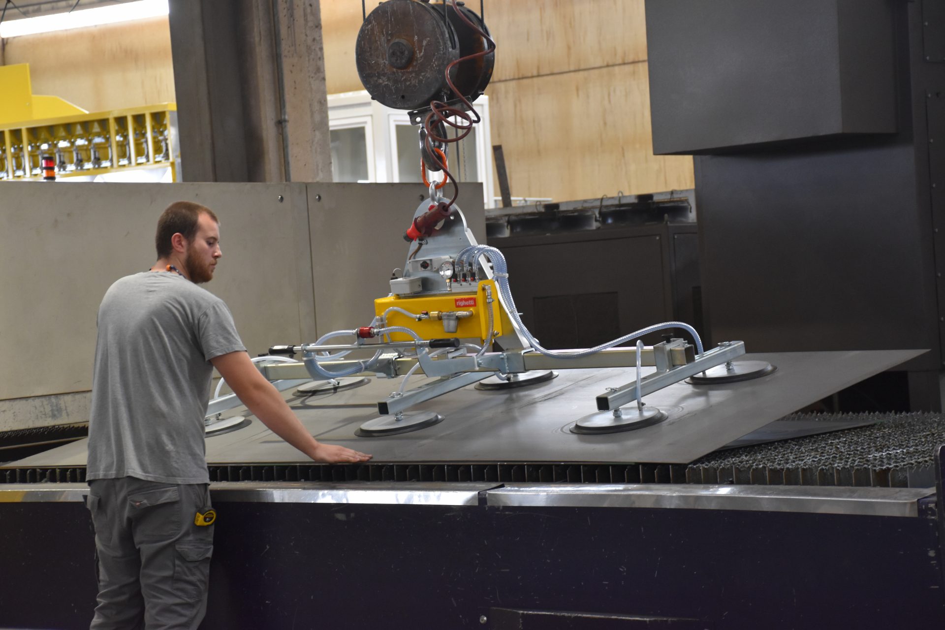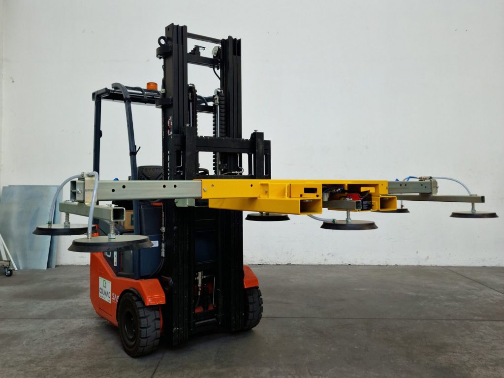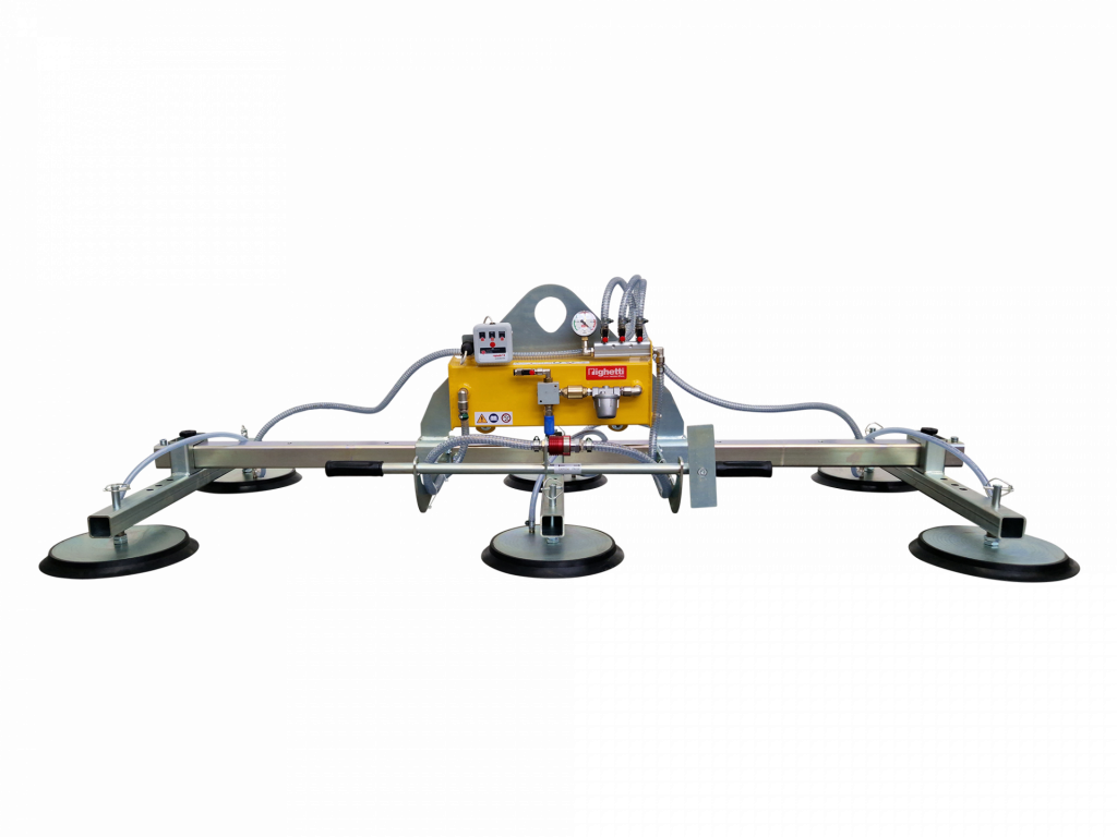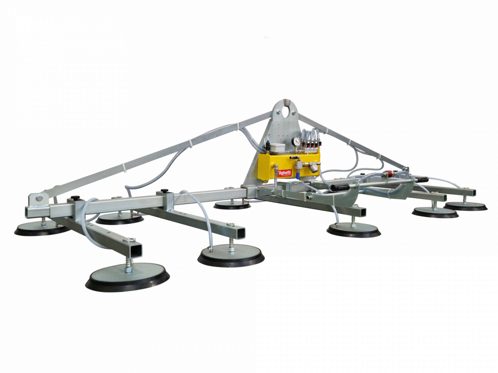En el proceso de producción, las ventosas de elevación son herramientas ideales para mover chapas de un lugar a otro. En este ámbito, los equipos suelen contar con una estructura horizontal fija, aunque también existen modelos inclinables. Righetti proporciona ventosas en una variedad de tamaños y capacidades, adaptándose a los distintos formatos que se deben manejar. Por ejemplo, para chapas de formatos variados, se ofrecen soluciones con estructuras telescópicas.