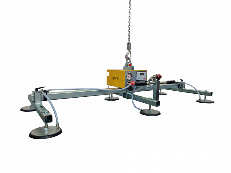 Una gama de elevadores de ventosas en horquilla, perfectos para su uso en equipos de elevación equipados con horquillas. Con una altura bajo gancho de 250 mm, estos modelos son la solución perfecta para manipular chapas metálicas entre bastidores en voladizo o máquinas de corte por láser con poca altura.