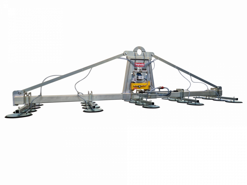 La serie FS8 se compone de una gama de ventosas equipadas con 8 placas de ventosa que pueden desplazarse a lo largo de los brazos para adaptarse al tamaño de la carga a elevar. Este diseño permite mover incluso las chapas más finas, contrarrestando eficazmente cualquier riesgo de que la carga se doble.