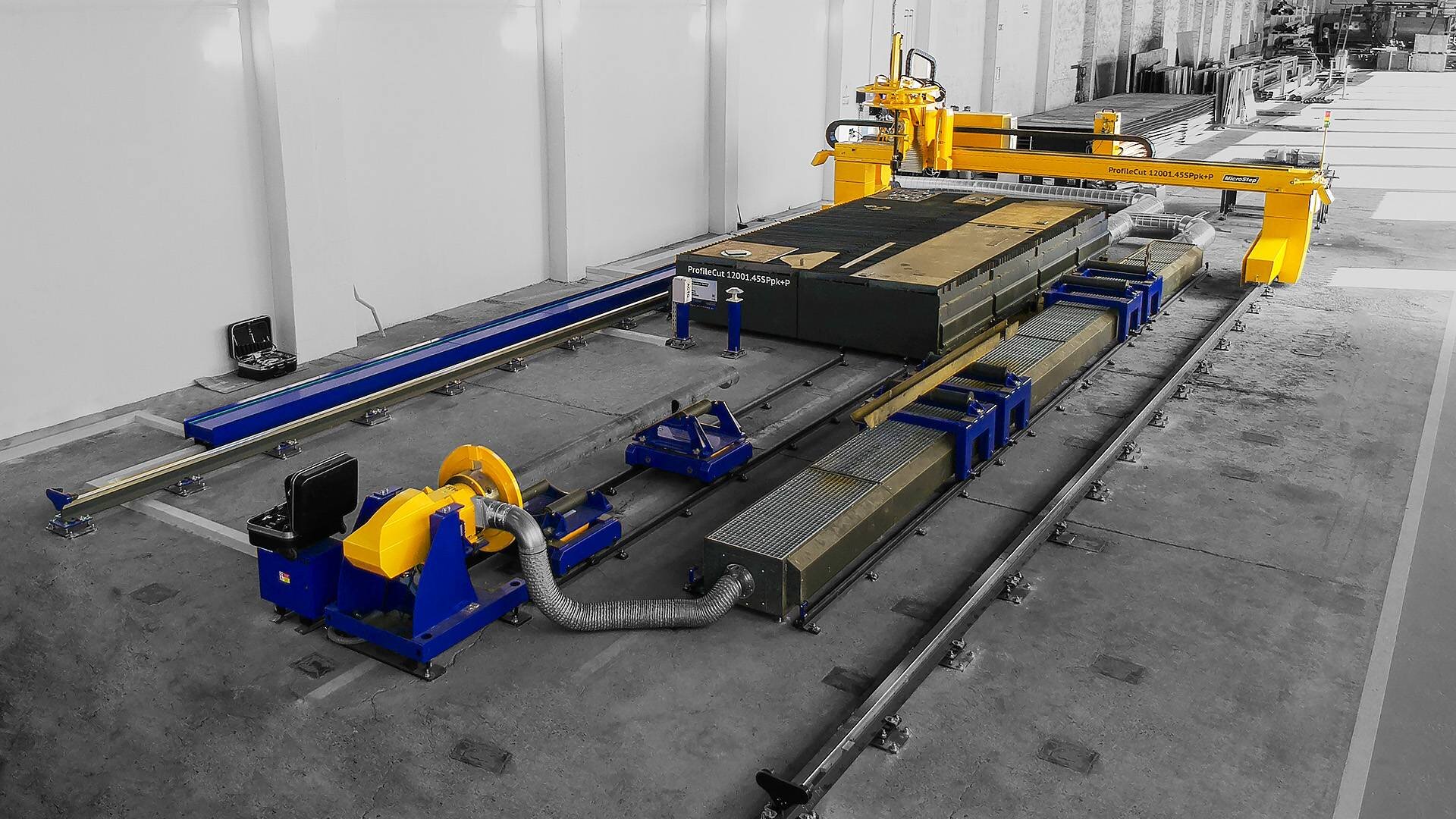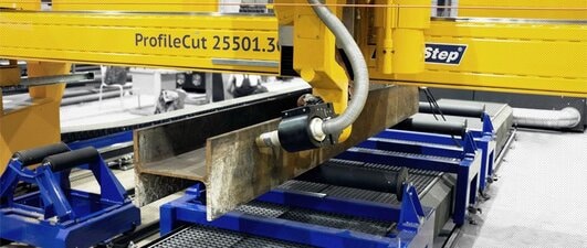 ProfileCut es una máquina variable dedicada a la producción de estructuras de acero. Además de las zonas opcionales para corte de tubos, perfiles rectangulares y láminas, tiene una zona dedicada para el corte de perfiles estructurales como I, U o L.