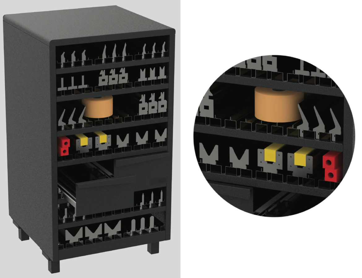 Es importante guardar en buenas condiciones el utillaje, esto evita un rápido deterioro del mismo. Ofrece un control rápido de cada una de las herramientas. Al operario le aporta seguridad y agilidad en la manipulación del utillaje, siendo más rápidos los cambios de herramientas en la plegadora.